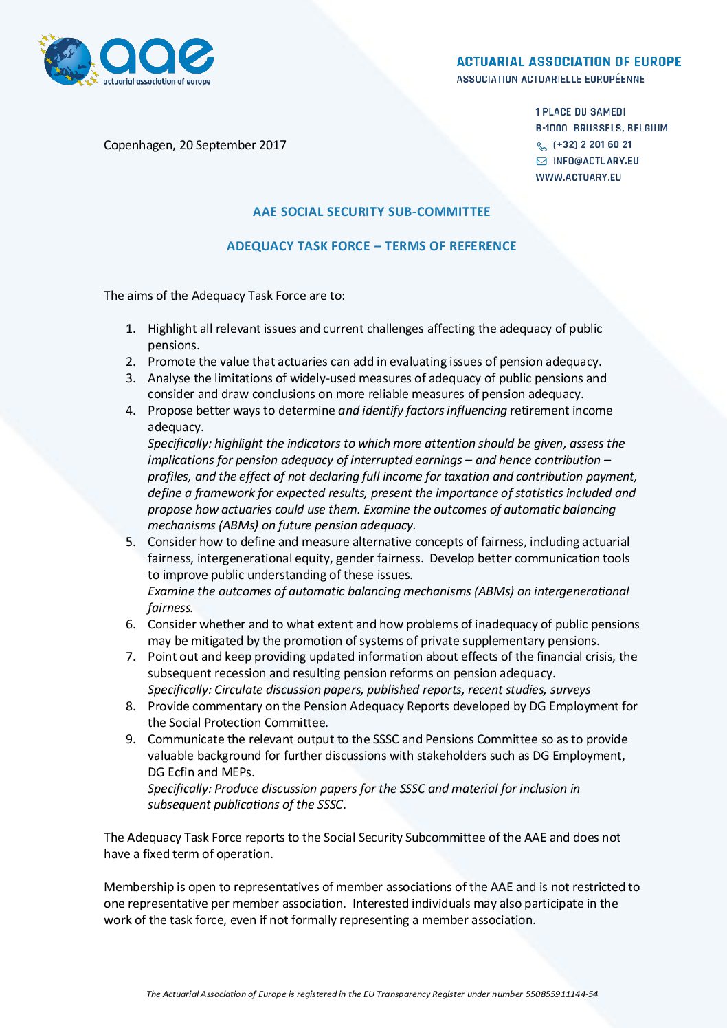 Terms of Reference – September 2017